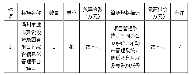 衢州市城市建设投资集团有限公司综合信息化管理平台项目竞争性磋商公告