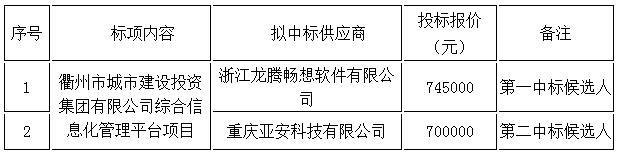 衢州市城市建设投资集团有限公司综合信息化管理平台项目的中标结果公告