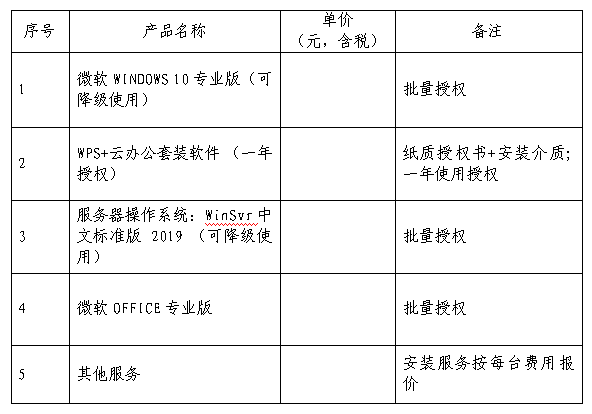 我公司为完成办公软件正版化采购项目,现开展询价采购,向贵公司(下称:供方)进行询价,请贵公司按照以下内容进行报价: