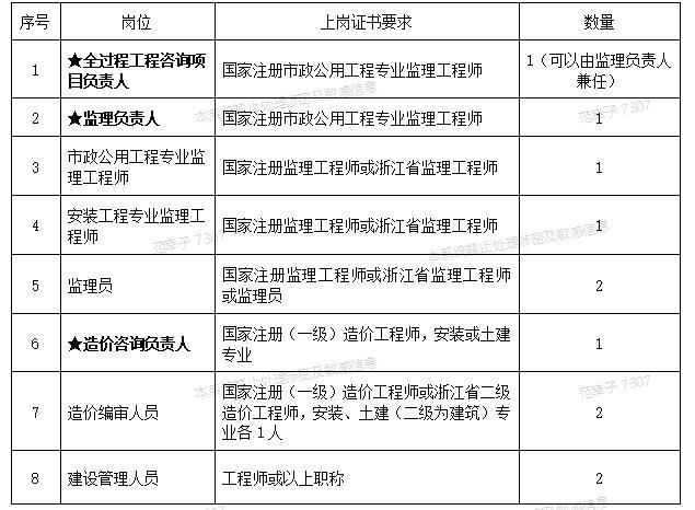 注:1.以上标注★号人员须提供(2021年9月至12月期间任意连续三个月)的社保证明(加盖投标人所属社保机构印章),不得出现退休返聘人员。2.浙江省监理工程师是指浙江省建设工程监理管理协会颁发的浙江省监理工程师“培训合格证”或衢州市建筑业行业协会颁发的专业监理工程师“培训合格证”或浙江省设区市监理协会颁发的专业监理工程师“培训合格证”的人员。监理员指持有浙江省建设工程监理管理协会颁发的浙江省监理员“培训合格证”或衢州市建筑行业协会颁发的监理员“培训合格证”或浙江省设区市监理协会颁发的监理员“培训合格证”的人员。3.浙江省建设工程监理管理协会正式更名为浙江省全过程工程咨询与监理管理协会,更名前后所颁发证书具有同样效力。4.无★号标注的其他人员在签订合同时按招标文件要求填报,在经招标人审批后作为派驻项目班子成员,且须提供签订合同止前一个月投标人所属社保机构养老保险交纳证明(加盖投标人所属社保机构印章),65周岁以下的退休人员需提供退休证明和聘用证明。