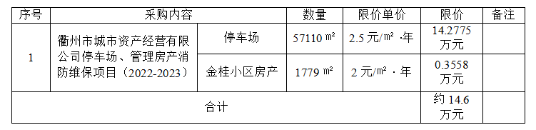 衢州市城市资产经营有限公司停车场、管理房产消防维保项目(2022-2023)采购公告