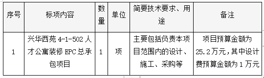 兴华西苑4-1-502人才公寓装修EPC总承包项目竞争性磋商公告