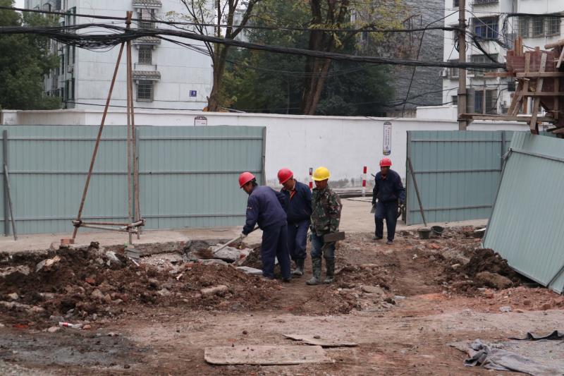 11月27日,走进老电影院停车场项目施工现场,一片繁忙景象,叮叮当当的施工声此起彼伏。项目负责人现场“蹲点”,施工人员密切配合,各个工序有条不紊,所有人员和施工设备“火力全开”。