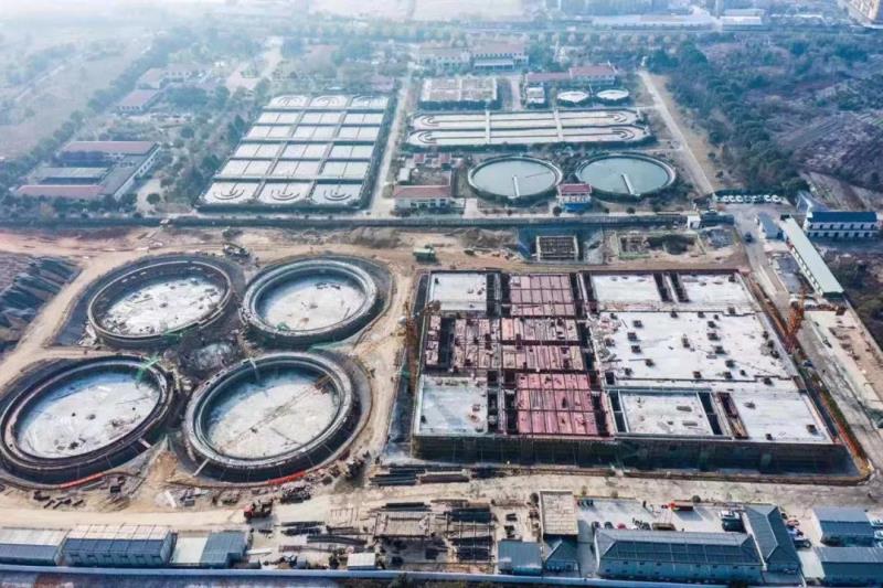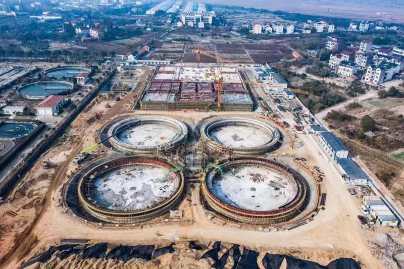 同时开展细格栅和沉砂池、污水提升泵站、消毒接触池、鼓风机房及配电间、加药间等构筑物的施工。其中AAO池体积约5万立方米,结构复杂、施工难度大。是整个项目土建施工的关键控制节点。目前已按计划完成土建的整体工程量60%以上。预计至2020年底项目基本建成并通水试运行。