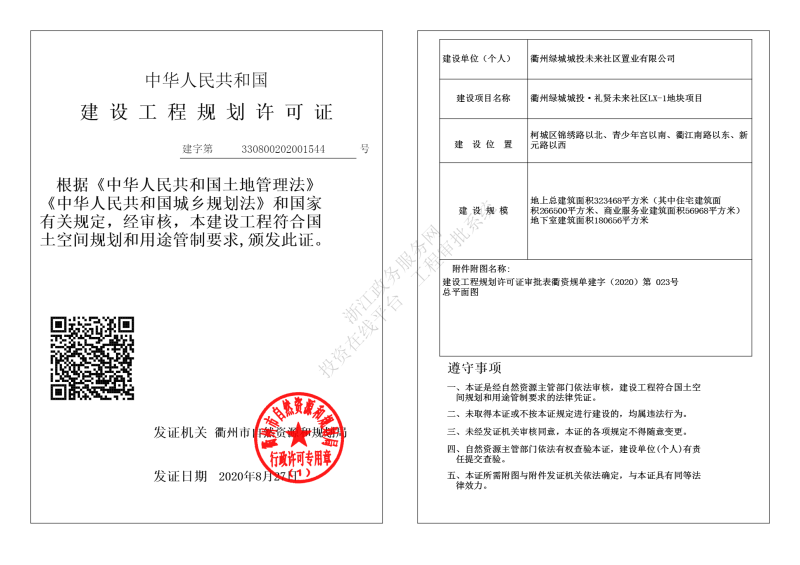 附件6:建设工程规划许可证LX-2,点击链接查看: