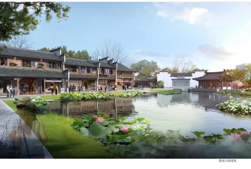 区块三处于钟楼和南孔家庙之间,建筑总面积约28000㎡,区块内文化展示以儒学文化为主题,形成文化体验研学教育旅游观光于一体的文化展示区。设计中亦植入了关于菱湖的历史记忆,在该区块东部区域展示了大片湖面,建筑上采用宋式风格,以再现菱湖的历史风韵。