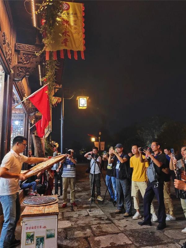 光影秀、灯光秀、古香古色的建筑、麻饼制作表演......在水亭门历史文化街区,许多拥有衢州特色的元素让拍友们不时驻足欣赏,在老师的指导下,拍友们拿起相机或手机,将衢州的浓厚的人文底蕴定格在镜头里。
