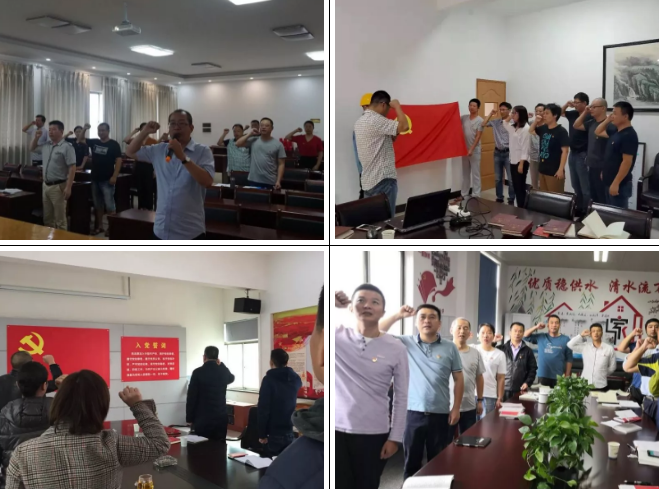 水业集团行政支部、供水营业分公司支部、排水支部、污水厂支部、水厂支部、衢化水厂支部、工程公司支部开展全体党员佩戴党徽,重温入党誓词、集中学习党课、赴结对社区服务等系列党员活动。