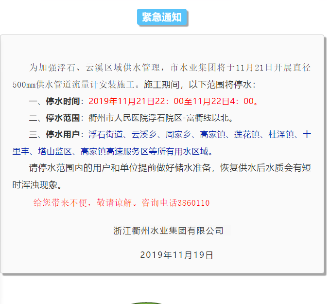 原来,水业集团开展浮石、云溪供水区域管理,在市人民医院浮石分院前进行直径500mm供水管道流量计安装施工。考虑到此次停水作业涉及范围广、管网长、施工复杂等实际情况,市水业集团一方面通过对沿线重点用户送达书面停水通知单、放置停水告知牌、发送停水短信等方式发布停水通知,另一方面组织现场踏勘,缜密安排施工计划,开展风险评估,确定21日晚间为最佳作业时间。当晚,营业分公司和工程公司通力合作,积极配合、全力保障管网阀门关闭停水、排水、通水及供水恢复运行等工作,傅红斌等人从当晚9点半开始,一直保障到次日凌晨3点半左右。