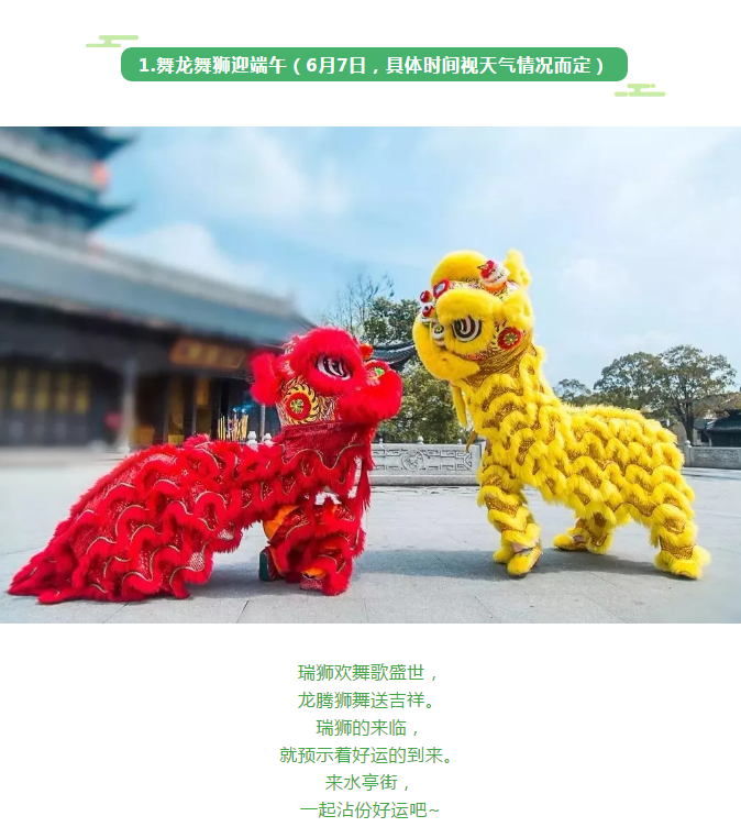 1.舞龙舞狮迎端午(6月7日,具体时间视况而定)