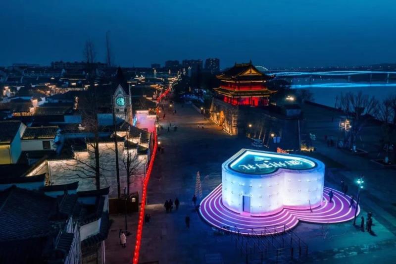 站在城墙下,你可以看到一个超大的“爱心礼乐盒”,站在盒子的内部,你能体验震撼的光影秀,感受衢州悠久的历史文化。