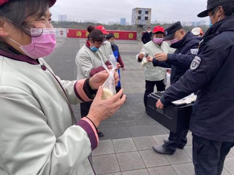 下午,数十笼新鲜出炉的包子送达至街区、景区、社区、菜市场等重点防疫值守点位。