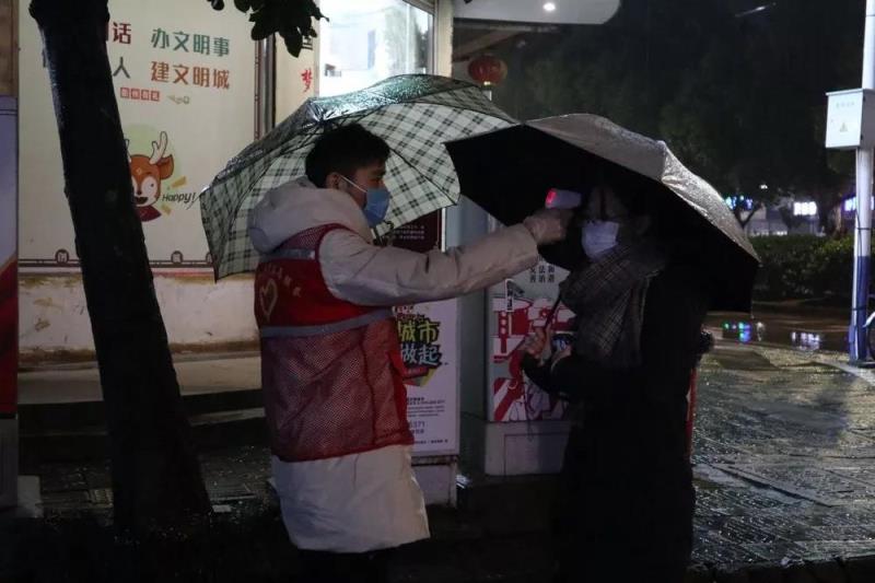“一直在关注着疫情的发展,总想做点什么,现在很庆幸自己能成为一名防疫志愿者,服务于社会。在做志愿者的这几天,社区工作人员贴心的给我们准备了水果、零食,还有不少人路过时向我们表示感谢,让我觉得自己现在做的一切都是值得的”,同为社区执勤的志愿者范美珍说道。话音刚落,她熟练地拿起额温枪朝着抱着小孩的一家三口走去。“您好,36.5℃,体温正常。夜晚风大,注意保暖,早点带孩子回家”。一句句贴心的关怀与问候,让这个冬日变得无比温暖。