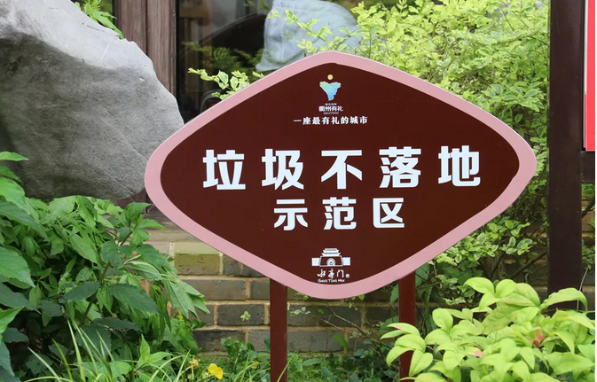 走进街区,每隔200米,你就能随处看到“垃圾不落地,有礼在街区”、“垃圾投放要分类,看到垃圾随手捡”等宣传标语,提醒游客文明出行。