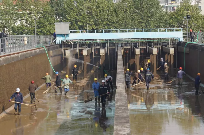 但员工们个个不畏艰辛,自告奋勇,有些中控值班员甚至是白天洗池结束就马上投入夜间值班,大家就一个信念,辛苦我一人,净水惠万家,全力投入到洗池工作中。大家浑身被汗水浸湿,泥沙和积水渗进雨靴都浑然不顾,一场洗池下来,雨衣雨鞋都可以倒出水来。