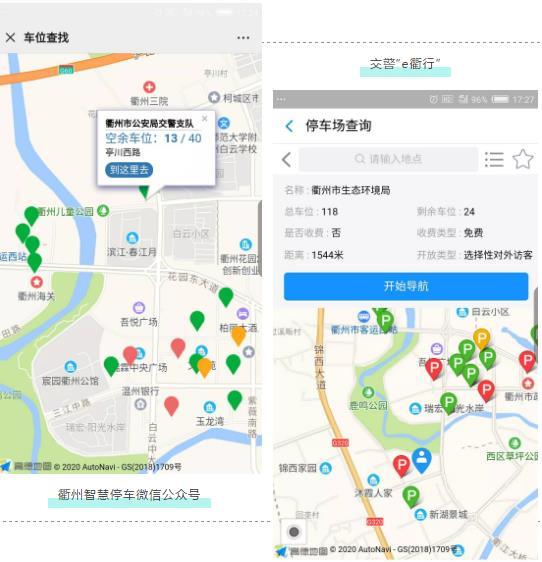 据悉,该项目将通过停车场联网、停车位信息实时共享等功能,实现“大市区”智慧停车“一张网”。这样既能提升停车空间利用率,又能方便市民群众出行、提升停车服务。6月起,车主朋友们出行寻找停车位时,只需关注“衢州智慧停车”微信公众号或交警“e衢行”(如下图所示),就可以轻松找到目的地附近的公共收费停车位及机关事业单位免费共享停车场。