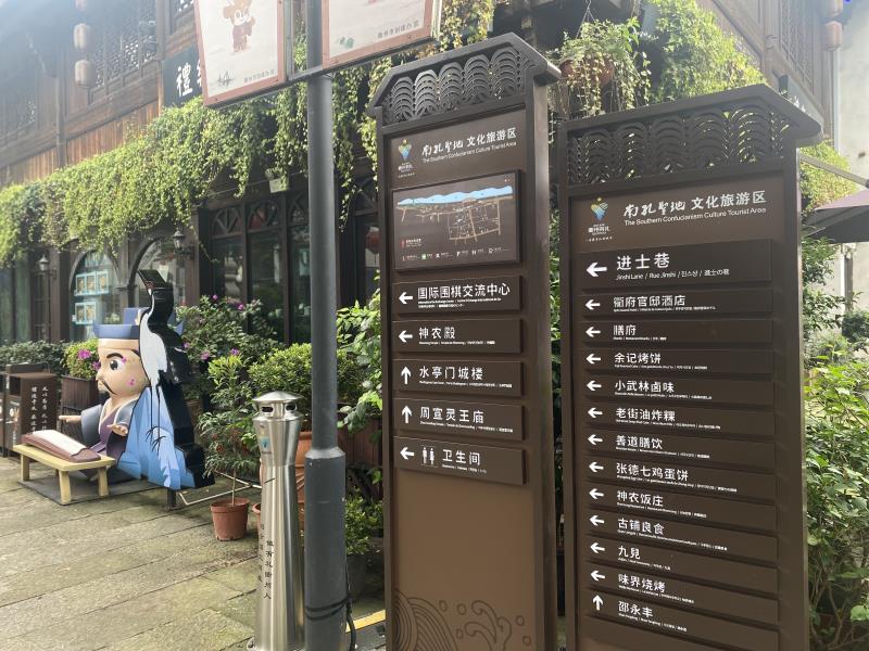 为进一步优化景区旅游基础设施,助力创建国家5A级旅游景区,日前,水亭门历史文化街区、北门街内路牌、停车导示牌等都已陆续更换为带有“南孔圣地文化旅游区”字样的标记标识。