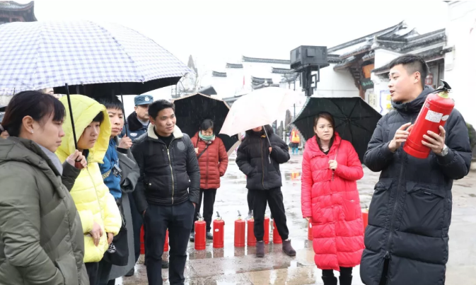 南孔消防职业培训学校根据街区木结构建筑较多的特点,精心制作了视频、图文等内容,强化商户们安全责任意识,强调了扑灭初起火灾的重要性,培训了商户掌握报警方法和正确使用灭火器的技能。