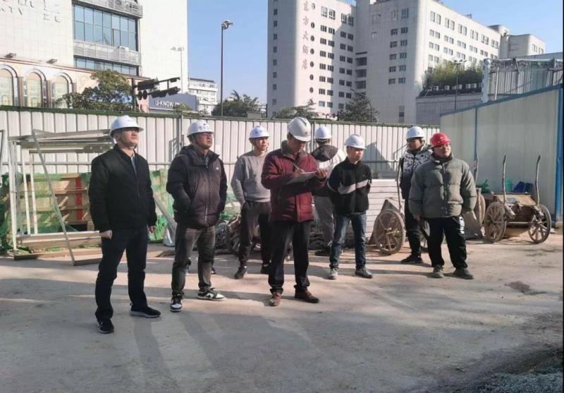 检查小组详细了解了项目进展情况,对施工现场的临时用电、临边防护、施工外架等方面进行隐患排查,并就安全施工方面作出具体指导。