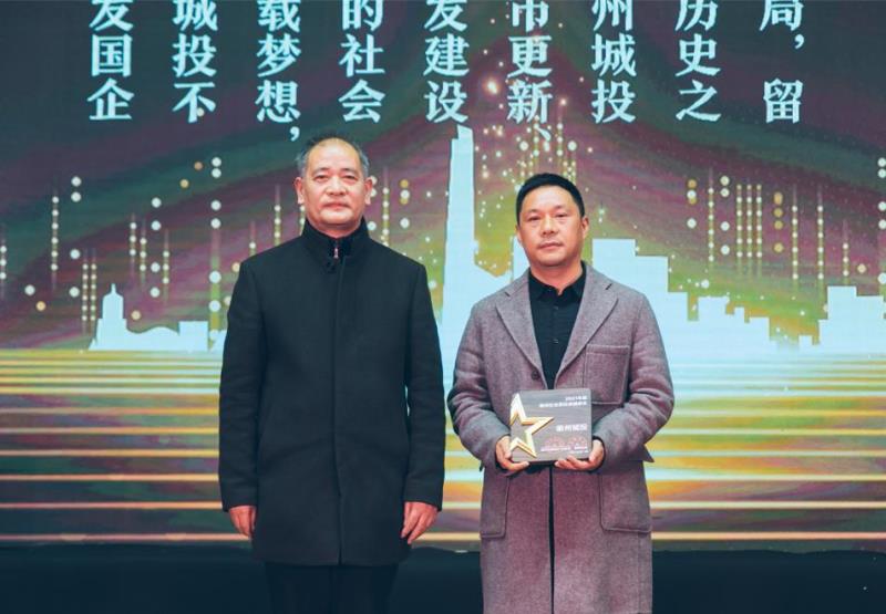 衢州市住建局党委委员、总工程师吴璀兴为衢州城投颁发“2021年度衢州社会责任卓越房企”奖牌。