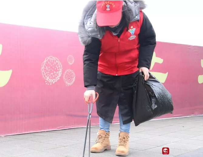 志愿者们手拿塑料袋和垃圾夹,把景区的边边角角扫了个遍,个个干劲十足。