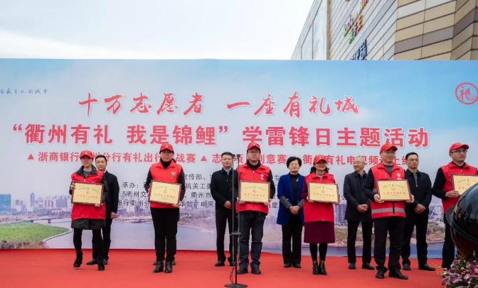 今天下午,我市举行“衢州有礼 我是锦鲤”学雷锋日主题活动,迎接第56个“学雷锋纪念日”。