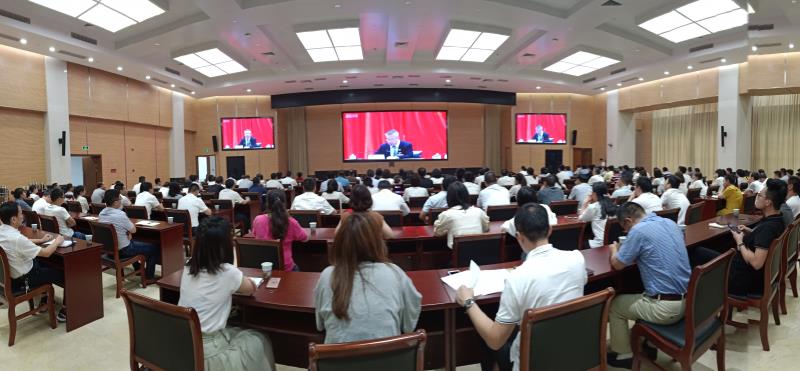 6月10日上午九点,中共衢州市委七届六次全体(扩大)会议在衢州工人文化宫召开。色情a片 组织全体员工在市政府3号楼二楼大会议厅同步收看了本次会议的视频直播。