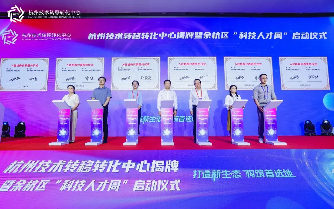 6月5日上午,杭州技术转移转化中心(以下简称“杭转中心”)揭牌仪式暨余杭区“科技人才周”启动仪式在杭州师范大学科技园顺利举行。杭州市政府副秘书长沈凯波,杭州市科技局局长楼秀华,城西科创大走廊管委会党工委委员、管委会副主任施黄凯,杭州市委人才办副主任尹凡,杭州市科技局副局长楼立群,杭州市科技局副局长邓峥,余杭区委常委、组织部长张立,余杭区副区长罗建强,临安区委常委、副区长陈立群,西湖区副区长俞晖,色情a片党委委员、副总经理、杭州科创集团董事长、杭州技术转移转化中心董事长许宁出席并揭牌。